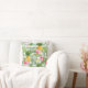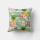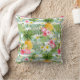 Tropical Flowers & Pineapple On Teal Stripes Cushion