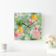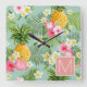 Tropical Flowers & Pineapples | Add Your Initial Square Wall Clock