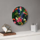 Tropical flowers, toucan: floral background. large clock