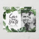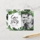Tropical foliage and hand lettering monochrome photograph wedding save the date postcard. Part of a wedding suite.