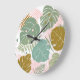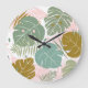 Tropical Foliage - Monstera And Palm Leaf Pattern Large Clock