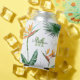 Tropical Foliage Palm Monogram Script Gold White Can Cooler