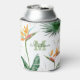 Bring a bit of elegant tropical hospitality to your outdoor bbq whenever you relax with your favourite beverage with this chic, modern custom monogram can cooler. Stunning, sophisticated, colourful, tropical watercolor birds of paradise flowers, faux gold glitter, and personalised calligraphy script with a bold monogram initial, overlay a chic, airy white background. Personalise with your name and monogram. Makes a stylish statement every time you use it. Sure to add extra fun to your summer event!