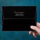 The inside of this black envelope features a pattern of gold faux foil and green tropical foliage on a black background. Add your name on the flap in gold hand-printing font and your address in white sans serif. It coordinates with our jungle safari themed kids' birthday and baby shower party invitations.