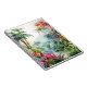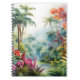 A Watercolour landscape of a tropical forest with colourful flowers