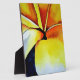 with original design from watercolour painting by artist Sacha Grossel of large, macro style yellow and white tropical Frangipani flower. This bright and vividly colourful design is inspired by Summer, warm weather, beach holidays and surf culture. A popular motif for floral and tropical botanical flower lovers everywhere.
