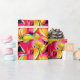 Neon pink , orange and yellow with original art design from watercolour painting by Sacha Grossel of tropical pink, yellow and orange Frangipani Plumeria flowers in close focus, macro style. This bright, colourful, floral botanical design is reminiscent of summer, surf culture, hot weather and being near the beach. Colourful and bright !