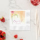 Hot Pink Freesia stem is watercolored on a tropical sunset wash of texture. Graceful typography elegantly personalises with the couple's initials and wedding date.