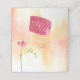 Single stem of Freesia watercolored on the face of the table number and name place card. Reverses to hot pink, painted watercolor swash with the initials of the bride and groom. Background is an orange sunset wash of watercolor texture.