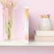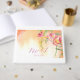 Watercolor washed background for a botanical Freesia stem in hot pink. Tropical colours make a happy medley of warm colour. Initials, date, and title are all completely customisable.