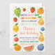 Celebrate your child’s birthday in juicy, tropical style with this colourful fruit-themed invitation! Featuring playful illustrations of pineapples, watermelon, citrus slices, and bold tropical leaves, this vibrant design is perfect for a summer pool party, luau, or fruity backyard celebration. Personalise all the event details easily and impress your guests with this fresh and fun invite!