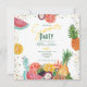 Invite guests to a cheerful celebration with this colourful tropical fruit summer party invitation featuring bright citrus fruits and botanical accents. Perfect for summer birthdays, tropical parties and fun outdoor gatherings. Original artwork by Caroline Bonne Müller