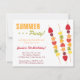 Have a tropical fruity summer birthday party starting with this fruits themed invitation. The invite has healthy fruits skewers to fight the heat. The fruits are cut in various shapes to make it interesting for kids which include strawberry, grape, honeydew in star shape, water melon in heart shape, orange, kiwi and pineapple. Reverse page is a mix of the fruits. A colourful palette. Personalise easily with your party details.