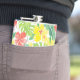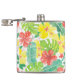 Tropical garden, hibiscus plumeria and palm leaves hip flask
