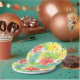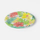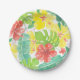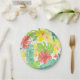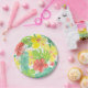 Tropical garden, hibiscus plumeria and palm leaves paper plate