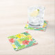 Tropical garden, hibiscus plumeria and palm leaves square paper coaster