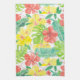 Tropical garden, hibiscus plumeria and palm leaves tea towel