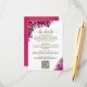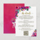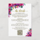 This beautiful wedding enclosure card is designed to give you extra space for whatever information your guests may need, including registry, reception, travel, accommodations, etc. as well as a customisable QR code directing your guests to your website for more information. The card features a vibrant colourful design with pink hibiscus, jade green monstera leaves and tropical garden flowers and greenery. The title is written in elegant gold script lettering and reads "the details." The back is a marbled magenta or hot pink colour with a bouquet of the same flowers tied with a white satin bow.
