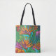 Colourful, Stylised painting collage of vibrant tropical flowers on a stylish Tote Bag by Lisa Lorenz