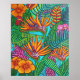 Colourful, Stylised painting collage of vibrant tropical flowers by Lisa Lorenz