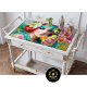 The application of this decoupage paper was very simple , applied with PVA glue on a plywood surface. The colour stayed true to paper before application . I used cling film to apply over ply wood , no wrinkles , very pleased with the result.