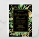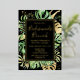This elegant tropical bridesmaids brunch invitation features green and gold palm, philodendron, and fern leaves on a black background. An elegant gold foil frame highlights the gold foil text. Gold foil splatters accentuate this exotic botanical design and brings a bit of modern whimsy to the invitation. This island oasis invite is perfect for any luau, beach or tropical themed bridesmaids brunch.