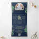 Tropical Gold Monstera Palm Navy QR Code Wedding Tri-Fold Invitation
