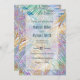 This trendy tropical gold and multicolor palm leave luxury design, is perfect for summer events, composed of minimal shining faux metallic gold foliage botanical greenery pattern, yellow gold, blue, teal, turquoise, pink, violet, purple, mint, green gradient colours palm leaf shapes Hawaiian design, shining faux metallic effects, on a plain white background. A unique, modern exotic jungle foliage summer illustration.
