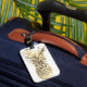 Travel in style with this tropical inspired luggage bag tag. This design features a pale gold pineapple on a white background. Designed by artist ©Susan Coffey.