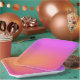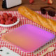 Pink, purple and orange gradient background.