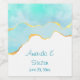 Bottle labels with a serene summery design. Turquoise / aqua green watercolor image with a wavy faux gold border. Elegant and lovely.