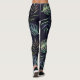 Hand designed tropical green leaf and palm leaves on deep navy blue stylish leggings.