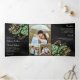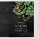 Tropical Green Gold Monstera Palm Black Wedding Tri-Fold Invitation