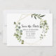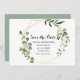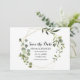 This tropical green leaves wedding save the date invitation is perfect for a simple wedding. The design features hand-painted beautiful green leaves, adorning a gold geometric frame.
