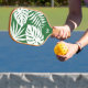 This Tropical Green Monogram Pickleball Paddle features a white tropical leaf pattern over a dark green background. Personalise it with a modern, simple font for your initial.