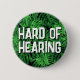 This tropical button features the slogan 'Hard of Hearing' in a bold white font, over a pattern of dark green palm leaves. You can edit the text as needed. A great gift for your father who wears hearing aids. ⭐ For more physical health pins, visit my store Zazzle.com/Elder_Vitality ⭐ For custom orders, message me on Zazzle