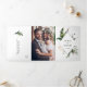 This all in one tri-fold wedding invitation card features watercolor green tropical foliage, monstera leaves, palm tree leaves, banana leaves with faux gold leaves accents, add wedding details, rsvp, and your photo. It's perfect for a tropical, summer, beach, or destination wedding.