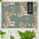 Tropical Green Watercolor Tigers Pattern With Name Tea Towel