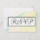 Tropical yellow and green with hint of pastel pink and blue watercolor background. RSVP is written in elegant black script inside white and geometric rectangle. Personalise backside details in black typography against crisp white background. Original Artwork Design by TamiraZDesigns.