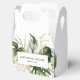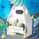 This tropical theme gable favour box features a watercolor motif of greenery, soft pink exotic flowers and gold accents. Perfect for an elegant beach, destination or luau themed wedding or bridal shower. Customise the wording in your choice of fonts and colours.
