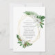 Trendy sage green and white watercolor tropical leaves and white magnolias Celebration of Life invitation with gold geometric frame.