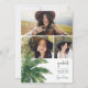 Tropical greenery script palm tree graduation party with watercolor exotic plant illustration and an elegant brush font typography. Add 3 photos on white