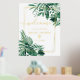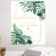 Tropical greenery palm watercolor bridal shower welcome sign, with faux gold geometric frame border.