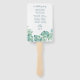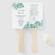 This elegant botanical wedding program fan features my original hand painted painted watercolor tropical palm tree leaves. The greenery is done in shades of blue green tones on a crisp white background. The bride and grooms names and wedding program timeline are set in hand lettered script and sans serif typography. This double sided design is an beachy choice for coastal, summer, destination and Florida weddings. Designed by Victoria of VG Invites. To see more, visit www.zazzle.com/vginvites