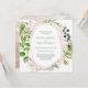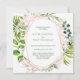 Tropical Greenery Wreath with Pink Flowers Invitation