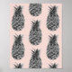 Tropical Grey & Pink Pineapple Seamless Pattern Poster
