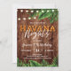 Rustic Wood Background of Birthday Invitation Card For Hot Havan Night in Tropical Style with String Light