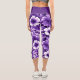 Tropical Hawaiian Flowers Hibiscus Purple Pattern Capri Leggings