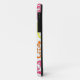 Phone case features yellow, pink, and orange tropical hibiscus flowers. Created from an original marker illustration.