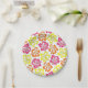 Plates feature an original marker illustration of a tropical hibiscus flower in pink, orange, and yellow. Simply personalise with your name and address information.